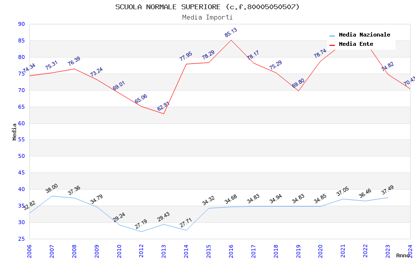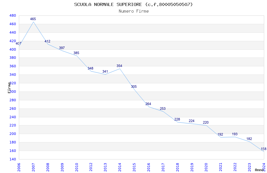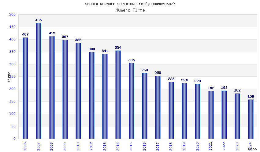 | Anno | Firme | Importi | Media | Naz. | Reg. | Prov. | Comu. |