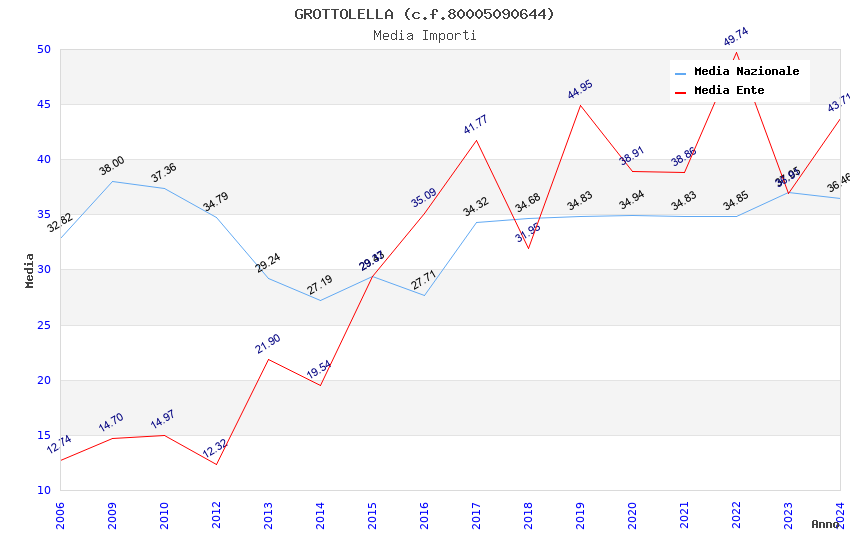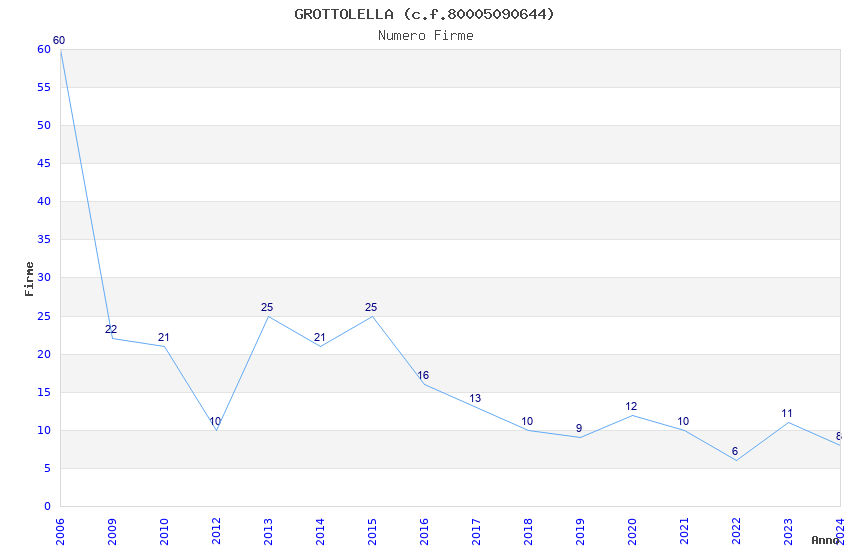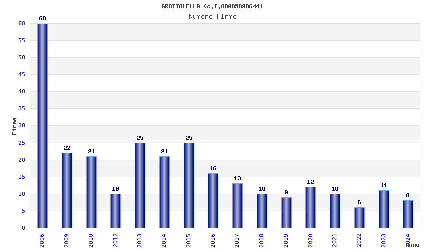 | Anno | Firme | Importi | Media | Naz. | Reg. | Prov. | Comu. |