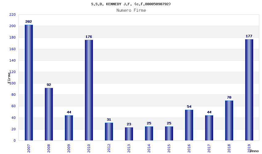 | Anno | Firme | Importi | Media | Naz. | Reg. | Prov. | Comu. |
