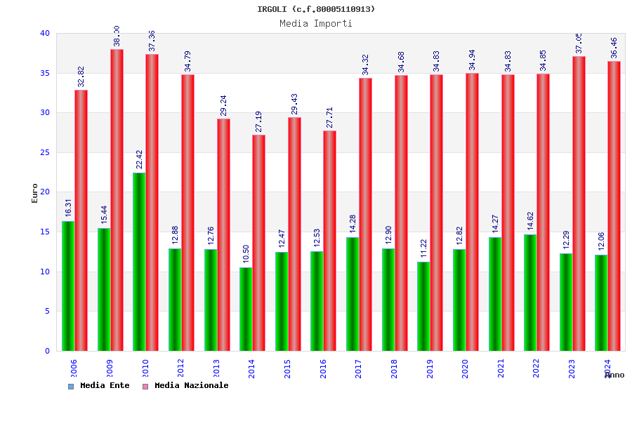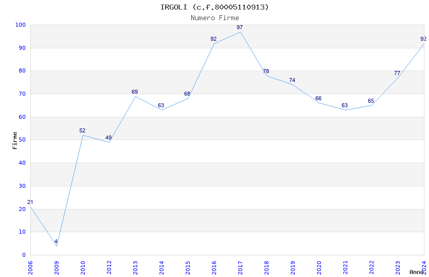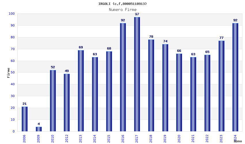 | Anno | Firme | Importi | Media | Naz. | Reg. | Prov. | Comu. |