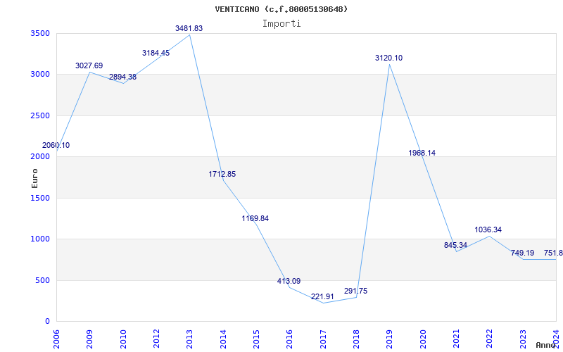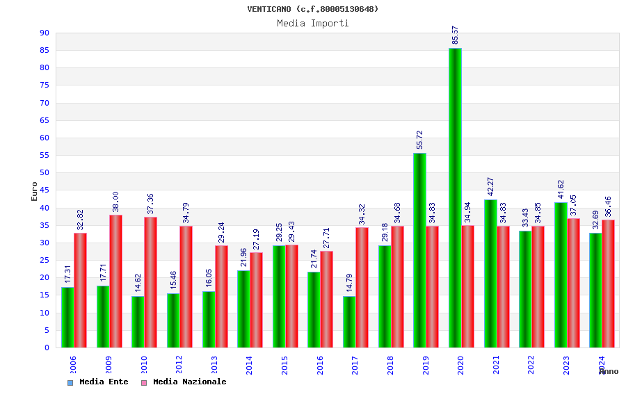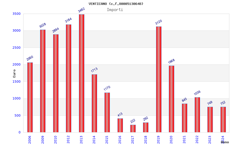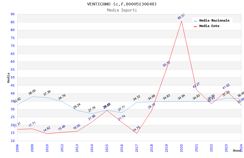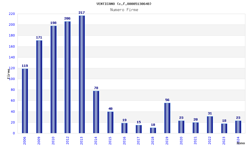 | Anno | Firme | Importi | Media | Naz. | Reg. | Prov. | Comu. |