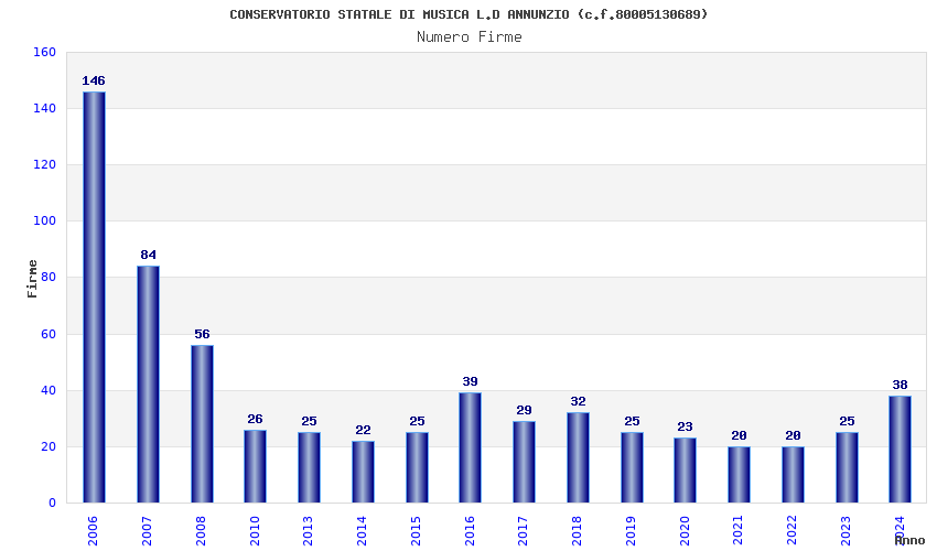| Anno | Firme | Importi | Media | Naz. | Reg. | Prov. | Comu. |