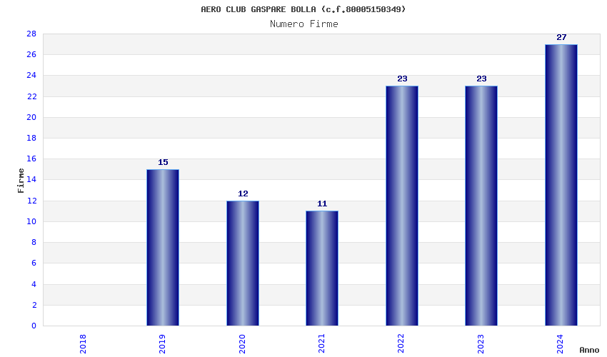 | Anno | Firme | Importi | Media | Naz. | Reg. | Prov. | Comu. |