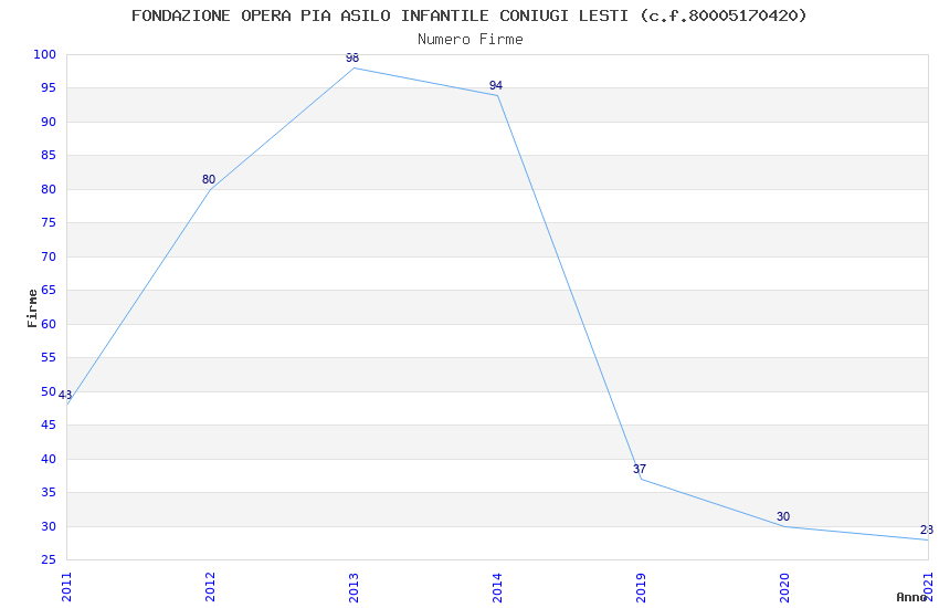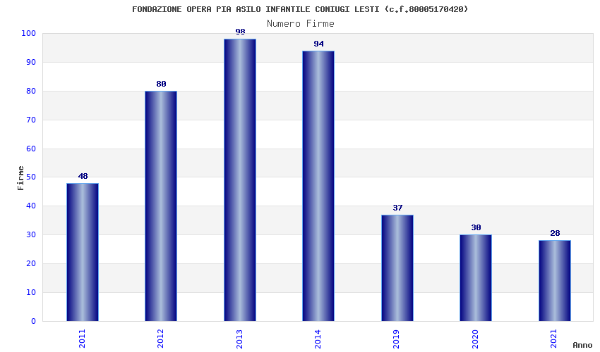 | Anno | Firme | Importi | Media | Naz. | Reg. | Prov. | Comu. |