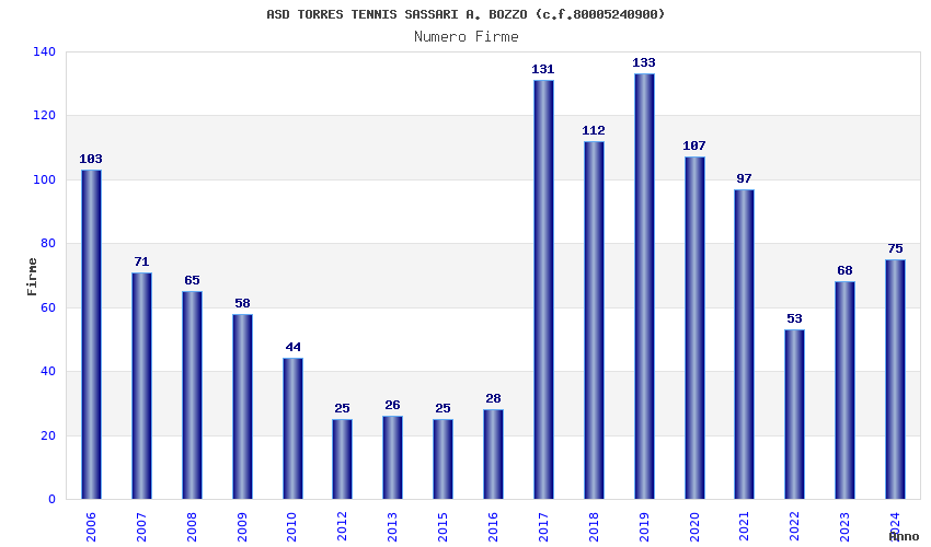 | 2019 | 133 | 6.677,18 | 50,20 | 8.218 | 109 | 26 | 11 |
