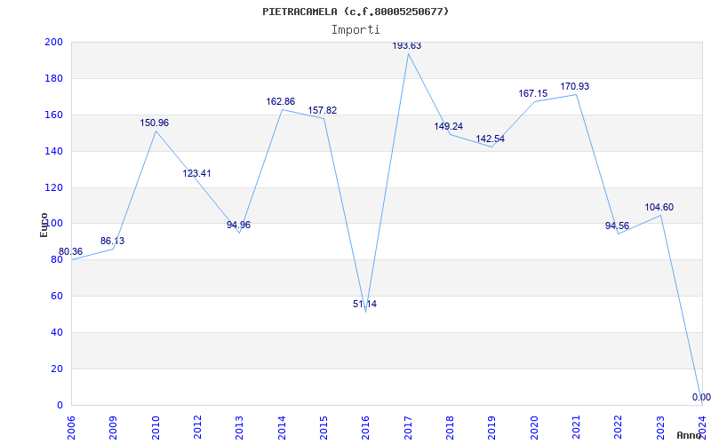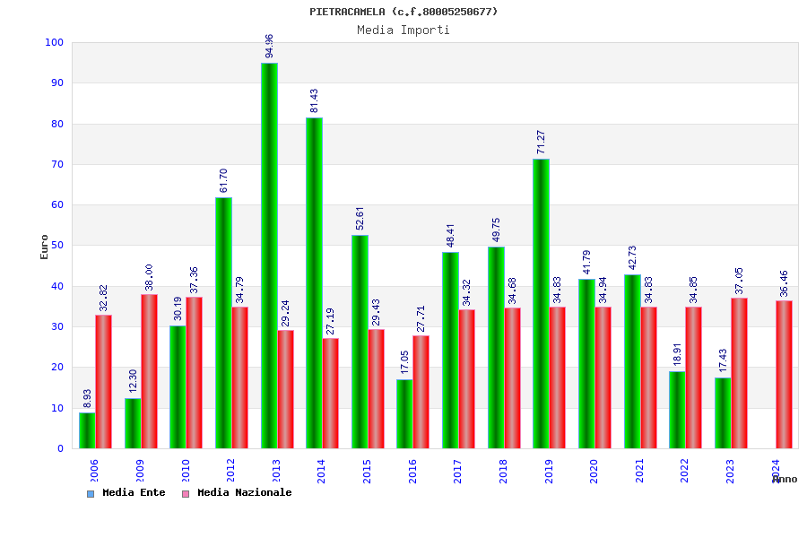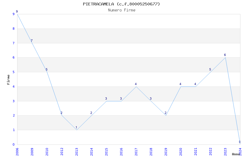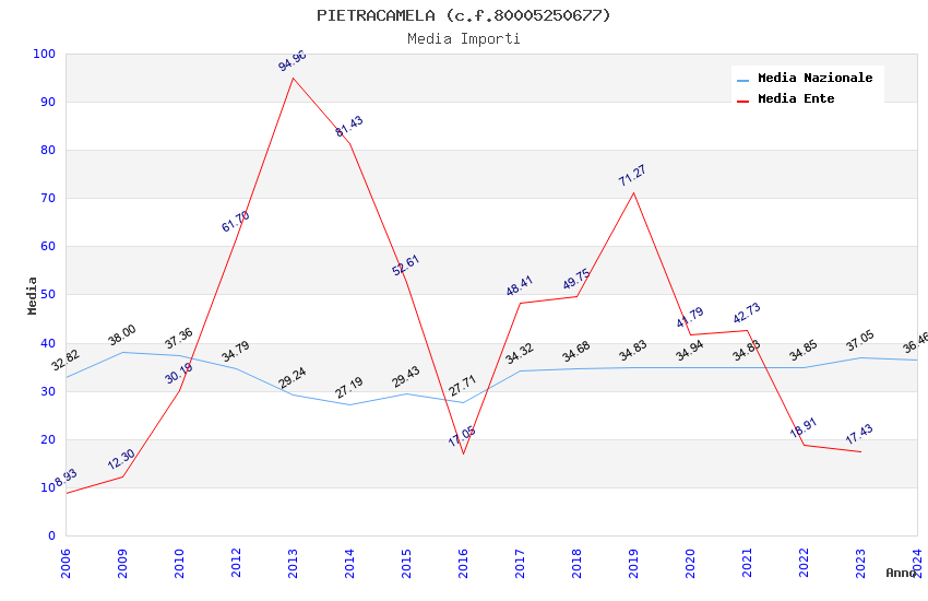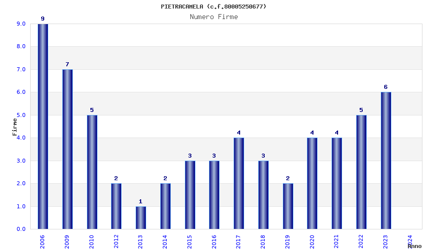 | Anno | Firme | Importi | Media | Naz. | Reg. | Prov. | Comu. |