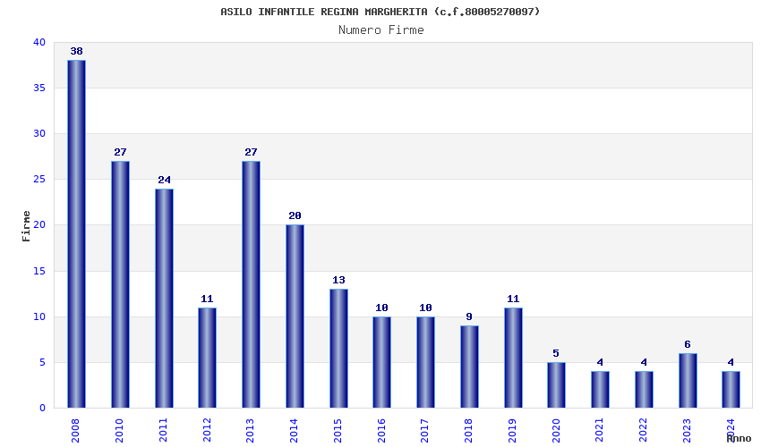 | Anno | Firme | Importi | Media | Naz. | Reg. | Prov. | Comu. |