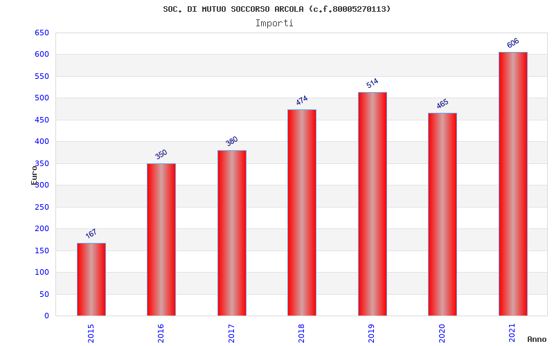 | Anno | Firme | Importi | Media | Naz. | Reg. | Prov. | Comu. |