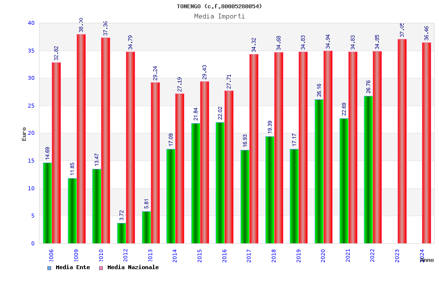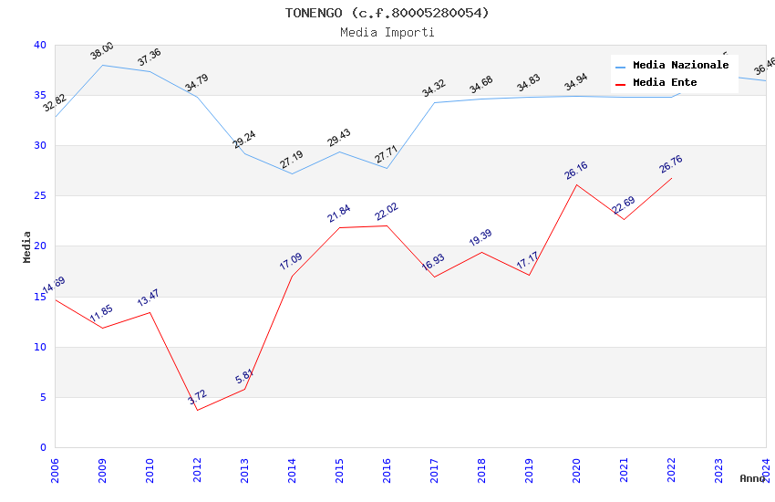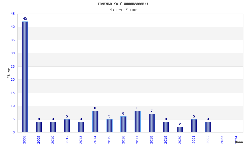 | Anno | Firme | Importi | Media | Naz. | Reg. | Prov. | Comu. |