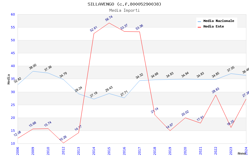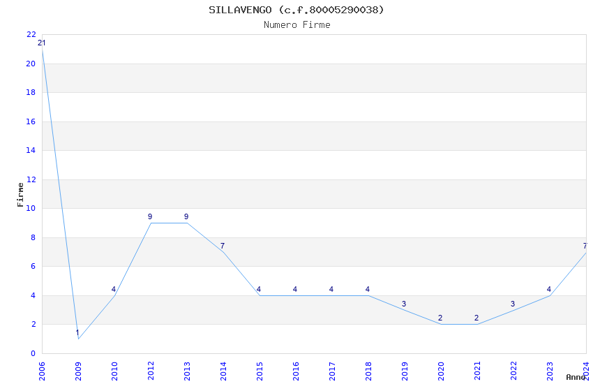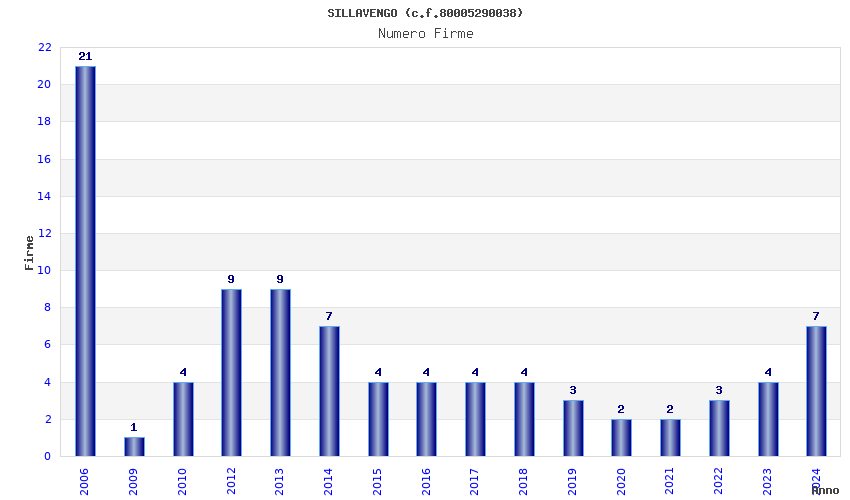 | Anno | Firme | Importi | Media | Naz. | Reg. | Prov. | Comu. |