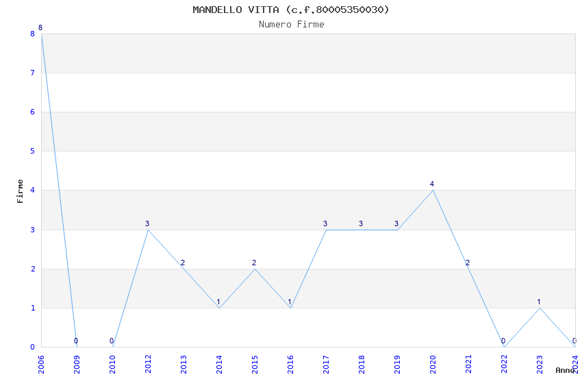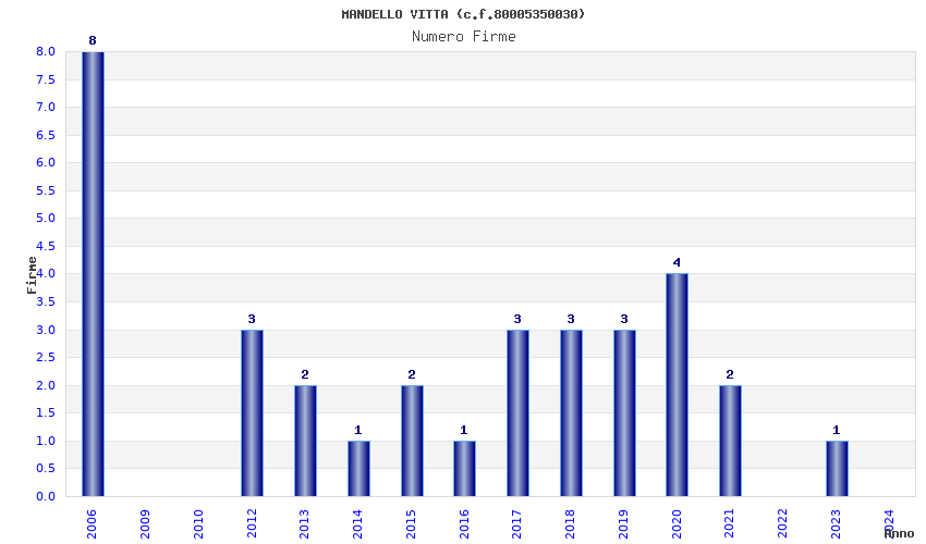 | Anno | Firme | Importi | Media | Naz. | Reg. | Prov. | Comu. |
