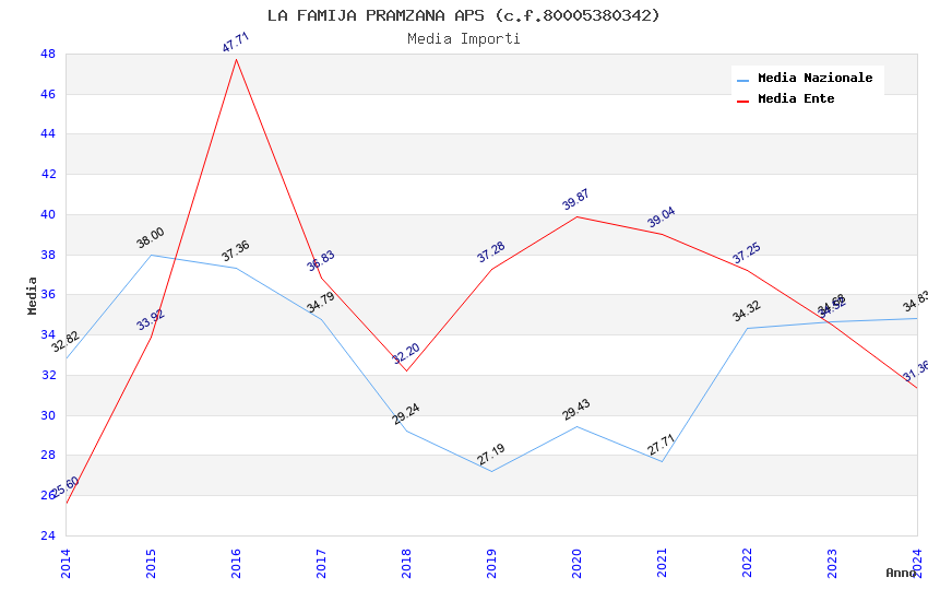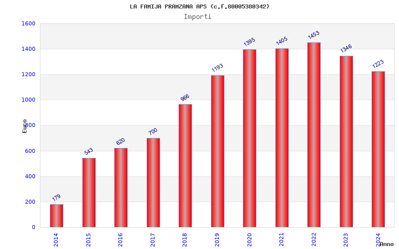 | Anno | Firme | Importi | Media | Naz. | Reg. | Prov. | Comu. |