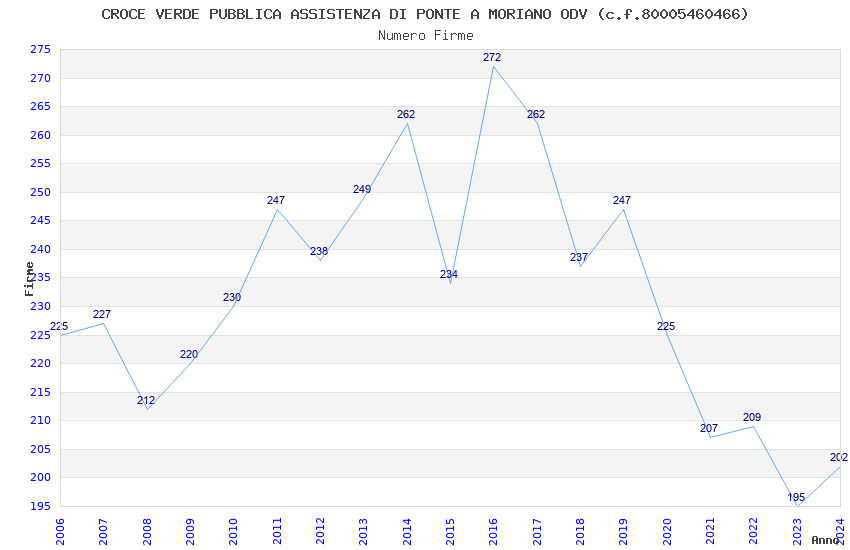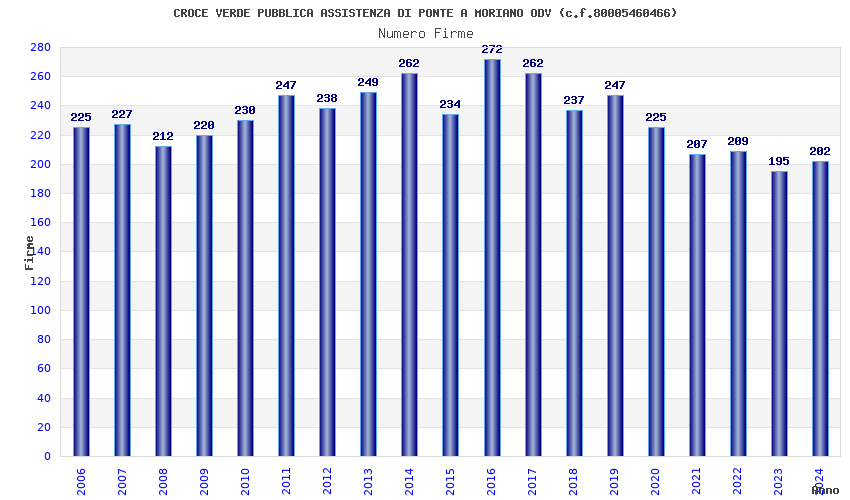 | 2016 | 272 | 13.509,97 | 49,67 | 3.566 | 239 | 20 | 6 |