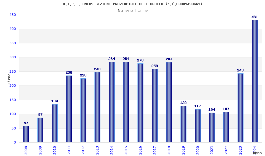 | Anno | Firme | Importi | Media | Naz. | Reg. | Prov. | Comu. |