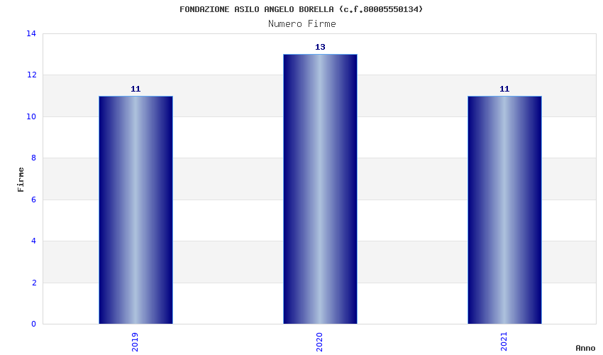| Anno | Firme | Importi | Media | Naz. | Reg. | Prov. | Comu. |