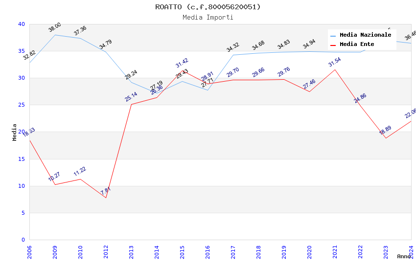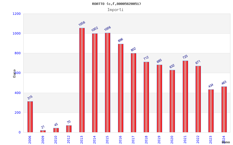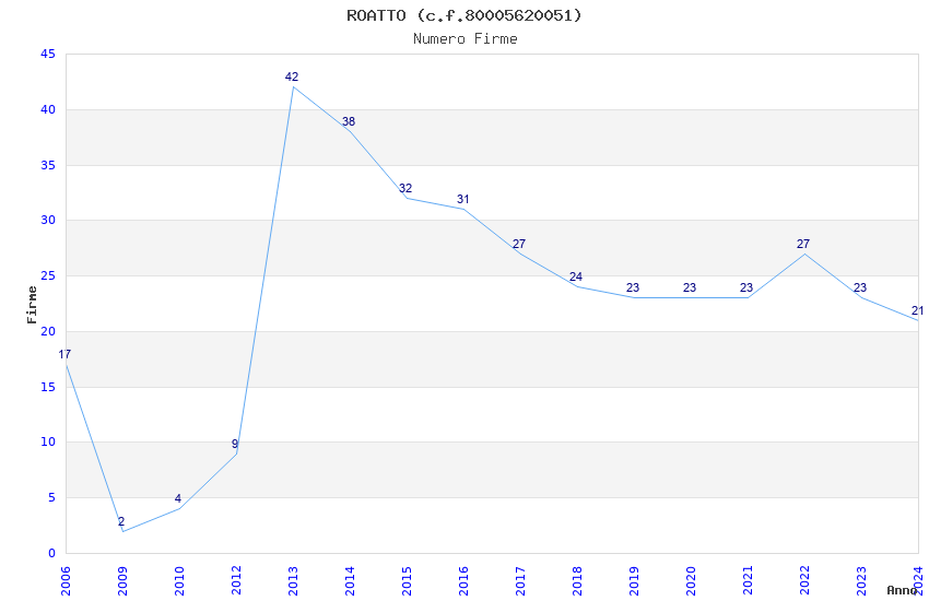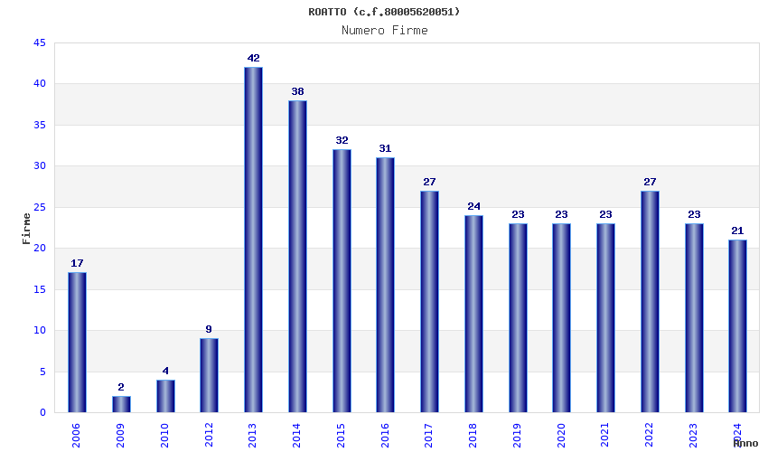| Anno | Firme | Importi | Media | Naz. | Reg. | Prov. | Comu. |