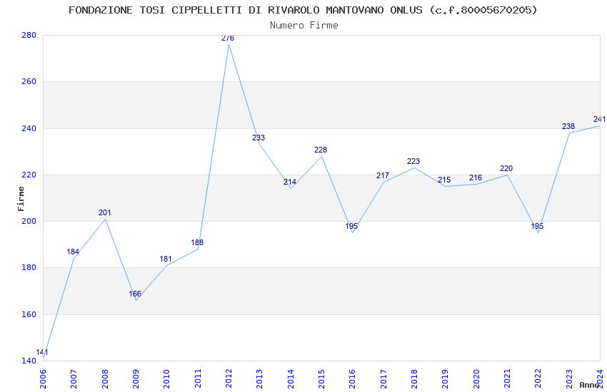 | 2012 | 276 | 5.074,95 | 18,39 | 8.579 | 1.982 | 54 | 2 |