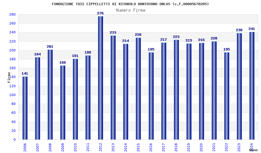 | Anno | Firme | Importi | Media | Naz. | Reg. | Prov. | Comu. |
