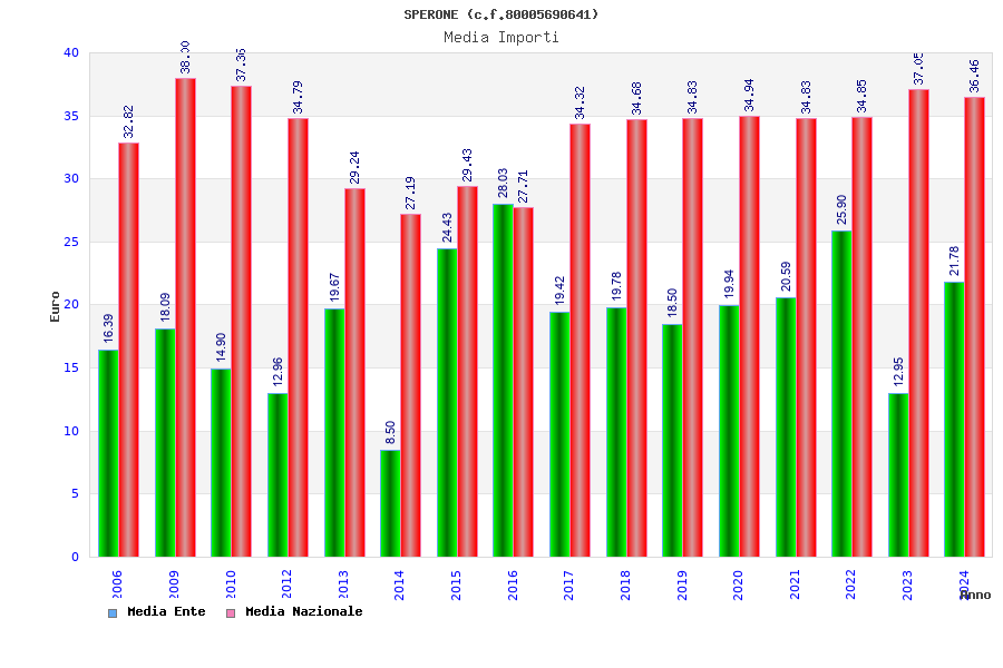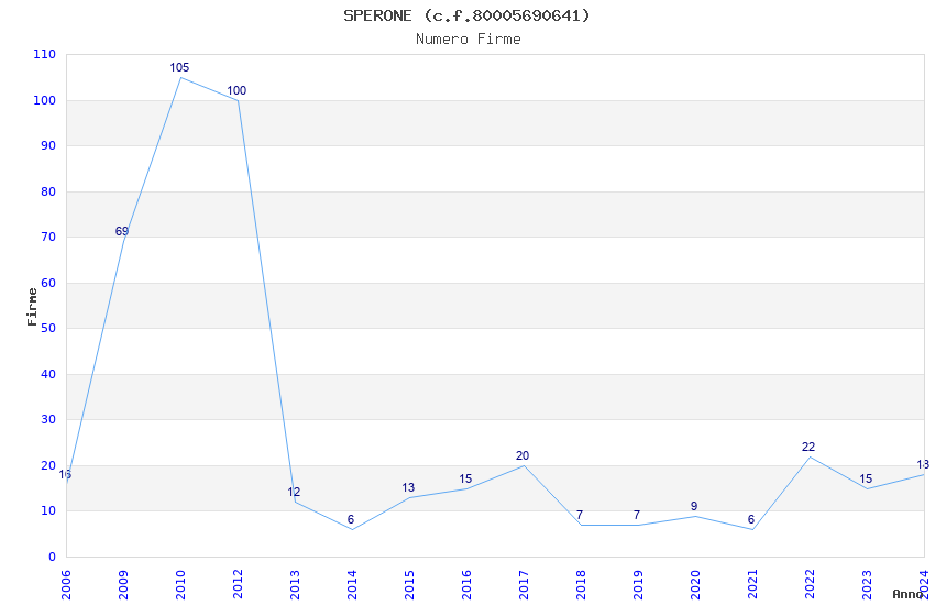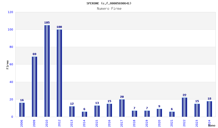 | Anno | Firme | Importi | Media | Naz. | Reg. | Prov. | Comu. |