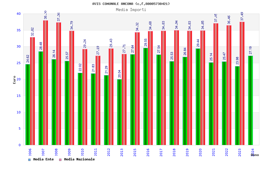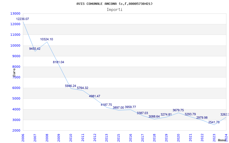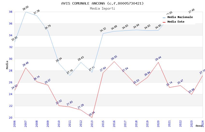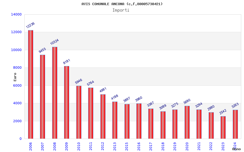 | Anno | Firme | Importi | Media | Naz. | Reg. | Prov. | Comu. |