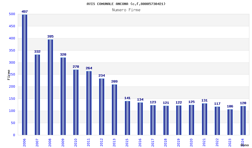 | 2006 | 497 | 12.236,07 | 24,62 | 3.351 | 86 | 42 | 23 |