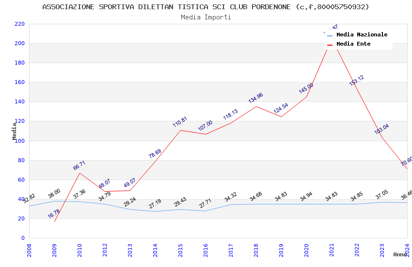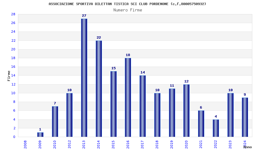 | Anno | Firme | Importi | Media | Naz. | Reg. | Prov. | Comu. |