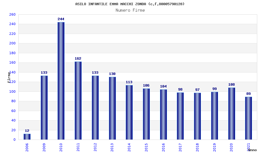 | Anno | Firme | Importi | Media | Naz. | Reg. | Prov. | Comu. |