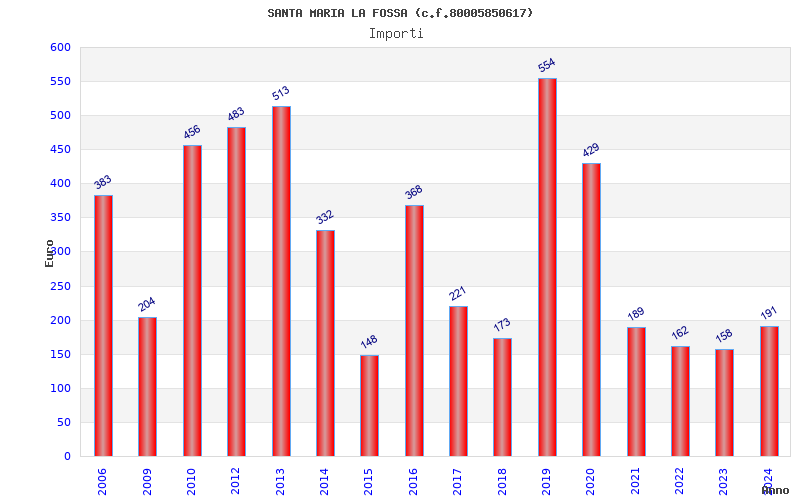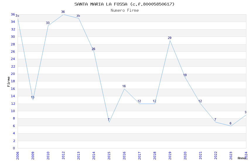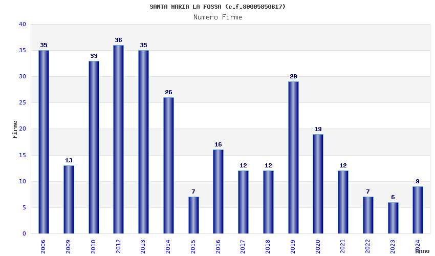 | Anno | Firme | Importi | Media | Naz. | Reg. | Prov. | Comu. |