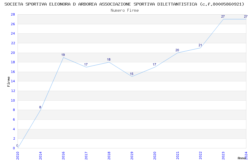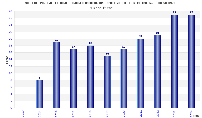 | Anno | Firme | Importi | Media | Naz. | Reg. | Prov. | Comu. |