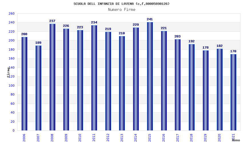 | Anno | Firme | Importi | Media | Naz. | Reg. | Prov. | Comu. |