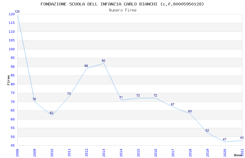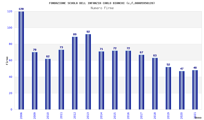 | Anno | Firme | Importi | Media | Naz. | Reg. | Prov. | Comu. |