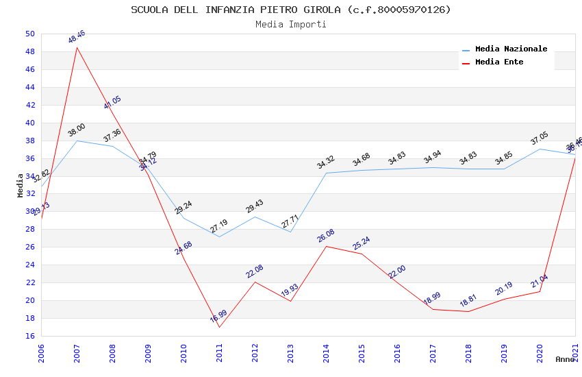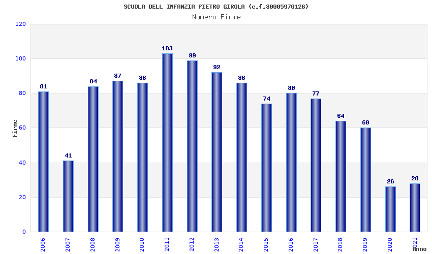 | Anno | Firme | Importi | Media | Naz. | Reg. | Prov. | Comu. |