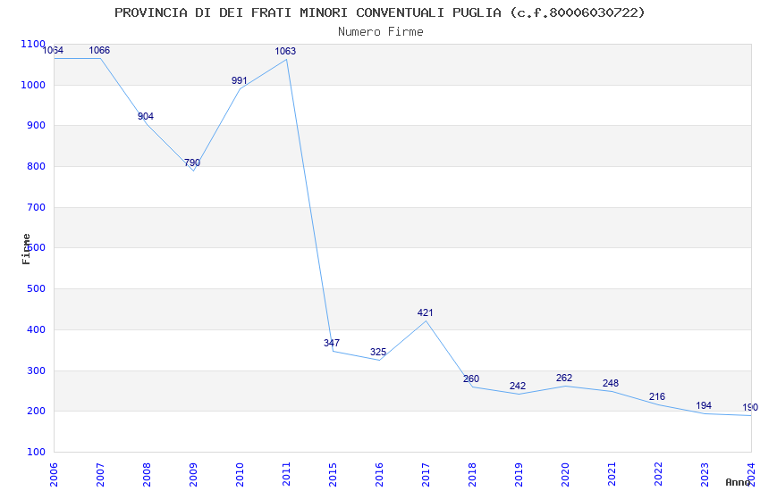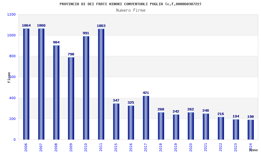 | Anno | Firme | Importi | Media | Naz. | Reg. | Prov. | Comu. |