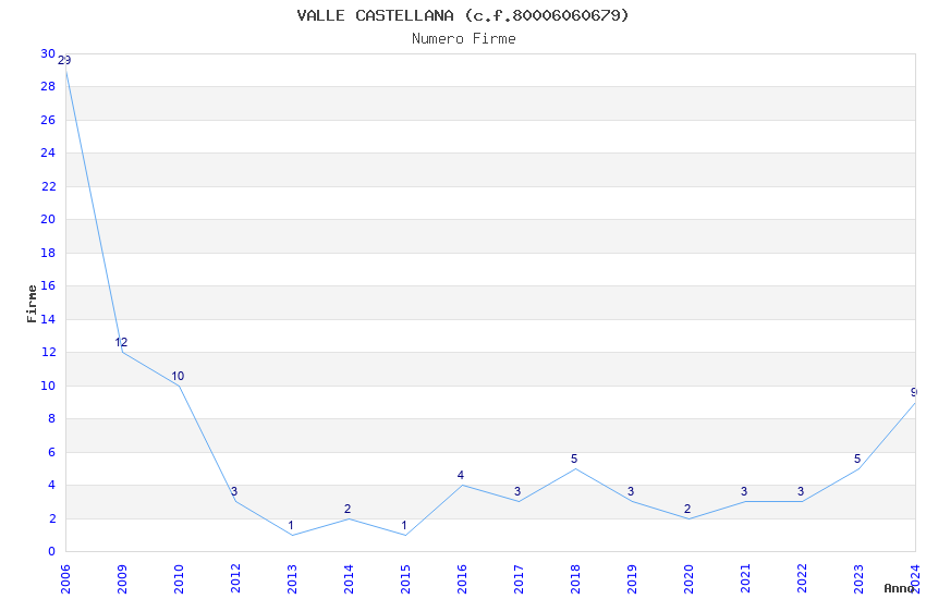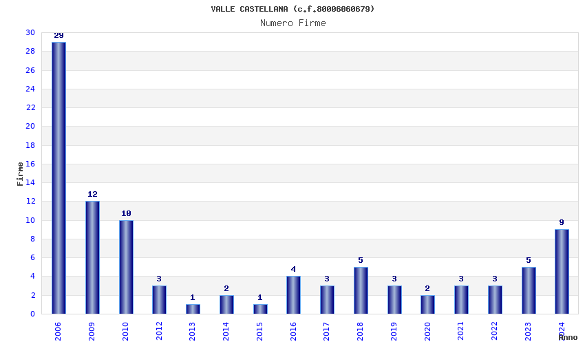 | Anno | Firme | Importi | Media | Naz. | Reg. | Prov. | Comu. |