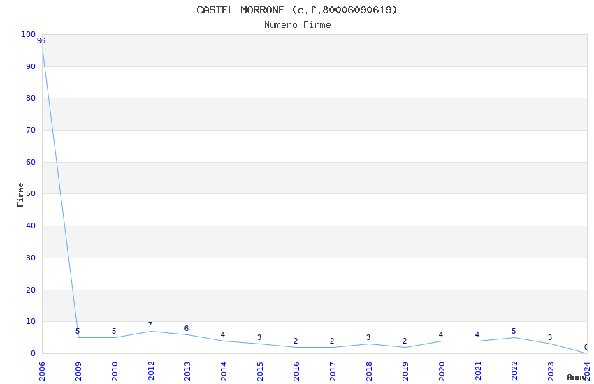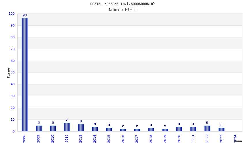 | Anno | Firme | Importi | Media | Naz. | Reg. | Prov. | Comu. |