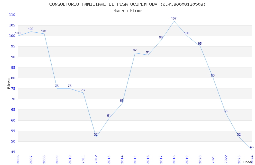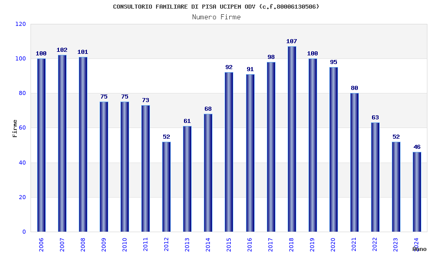 | 2018 | 107 | 5.007,49 | 46,80 | 11.076 | 709 | 96 | 46 |