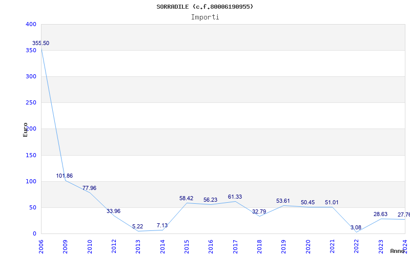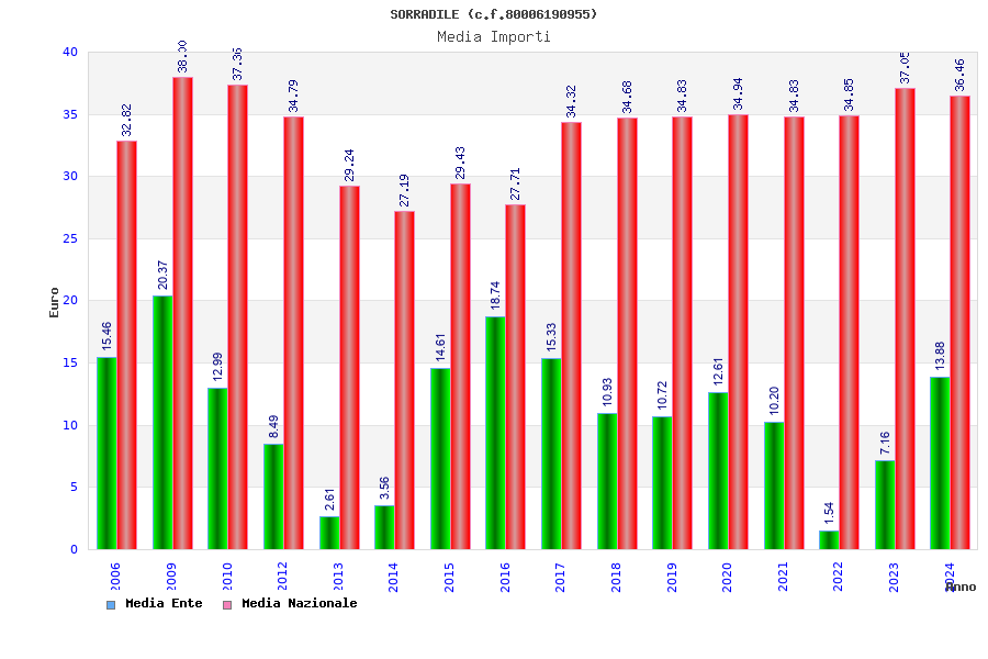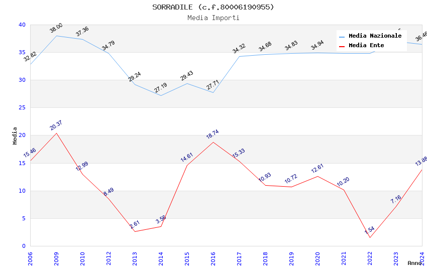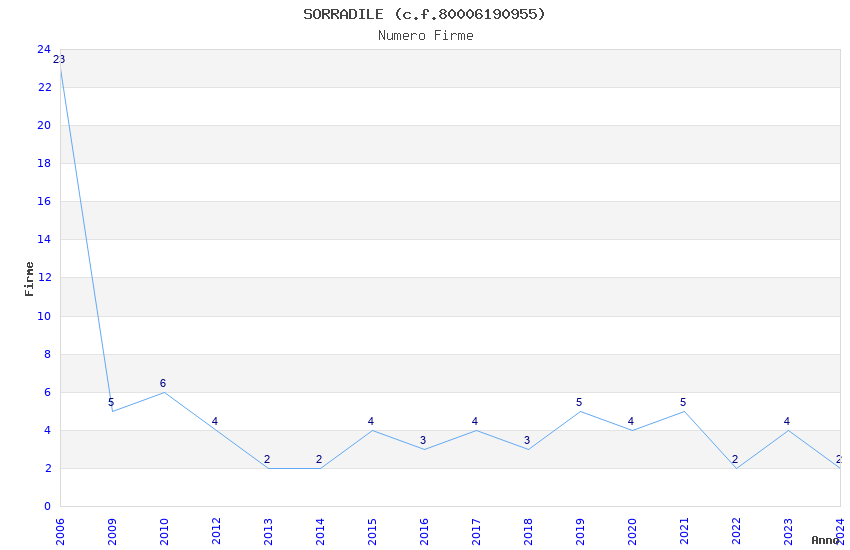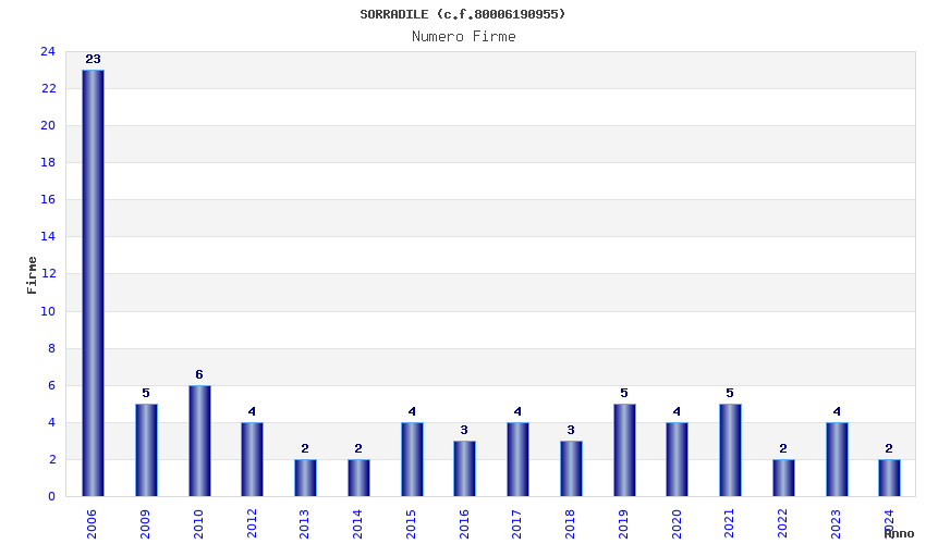| Anno | Firme | Importi | Media | Naz. | Reg. | Prov. | Comu. |