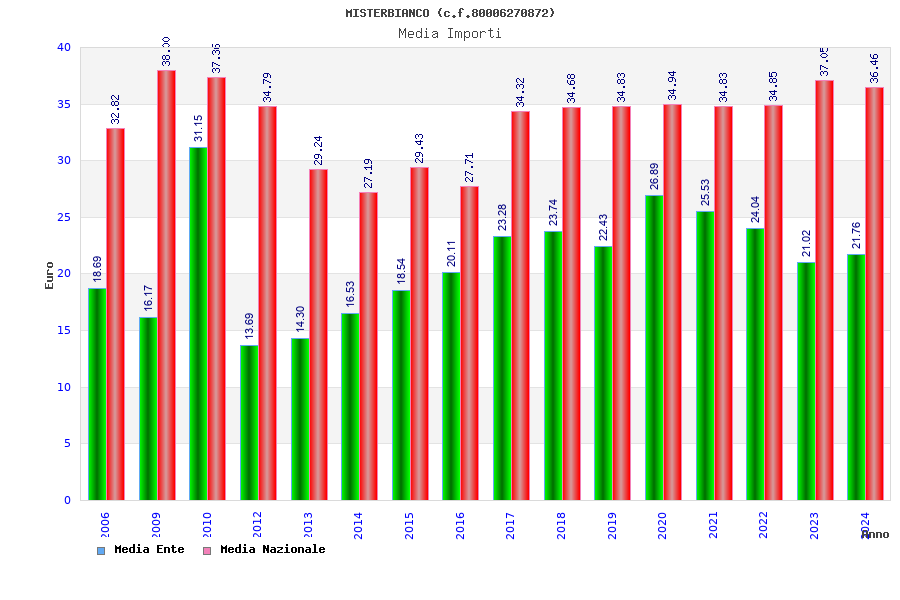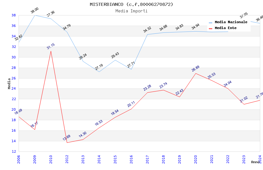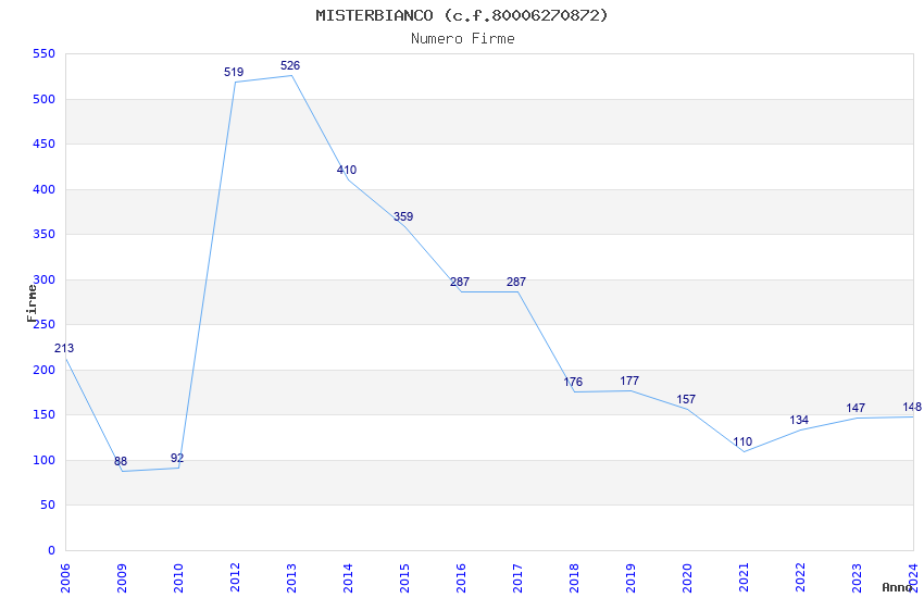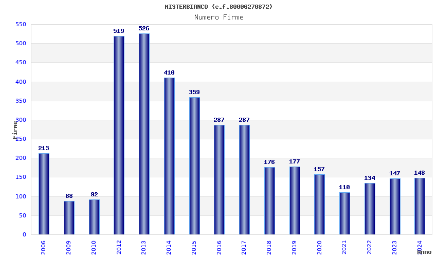 | Anno | Firme | Importi | Media | Naz. | Reg. | Prov. | Comu. |