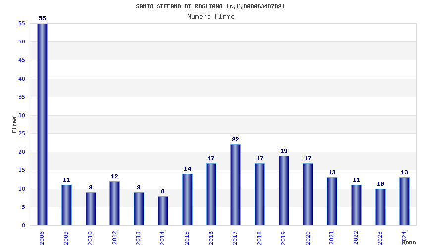 | Anno | Firme | Importi | Media | Naz. | Reg. | Prov. | Comu. |