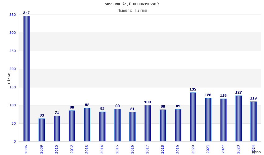 | Anno | Firme | Importi | Media | Naz. | Reg. | Prov. | Comu. |