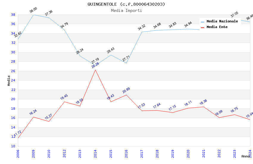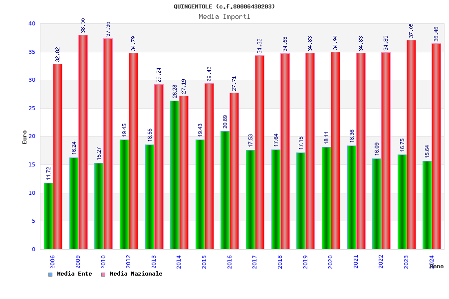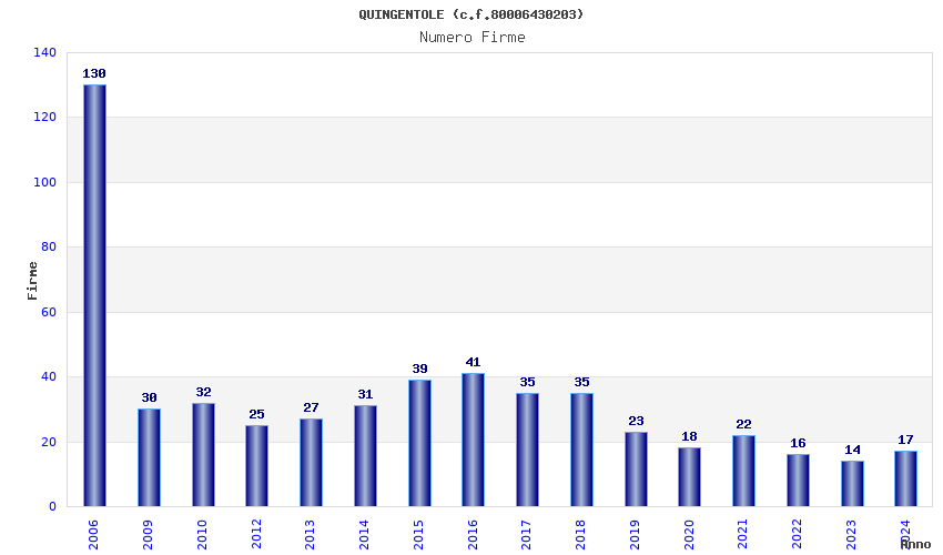 | Anno | Firme | Importi | Media | Naz. | Reg. | Prov. | Comu. |