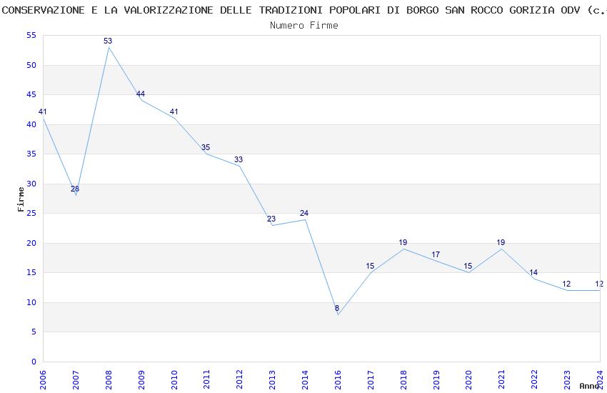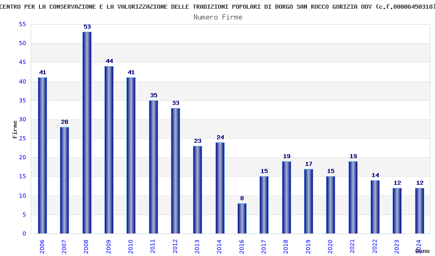| Anno | Firme | Importi | Media | Naz. | Reg. | Prov. | Comu. |