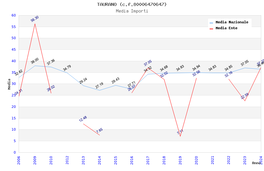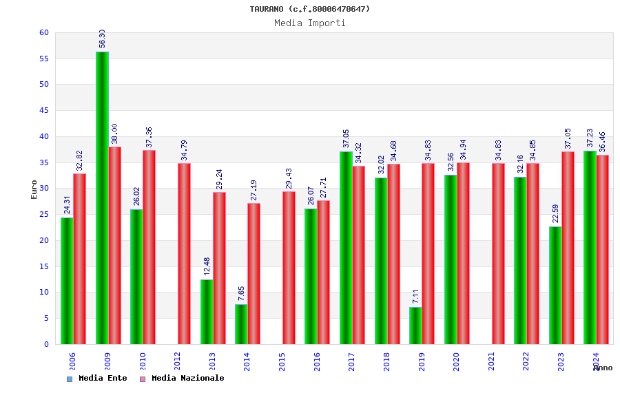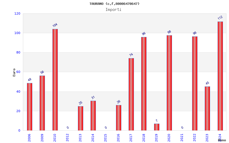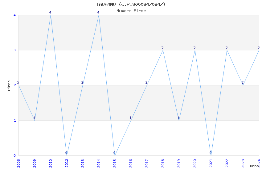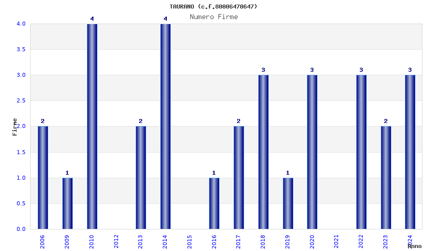 | Anno | Firme | Importi | Media | Naz. | Reg. | Prov. | Comu. |