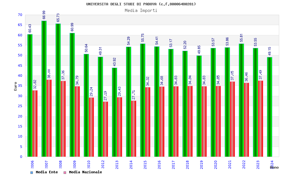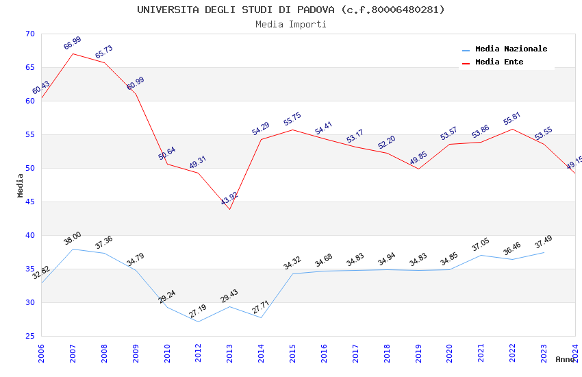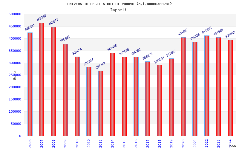 | Anno | Firme | Importi | Media | Naz. | Reg. | Prov. | Comu. |