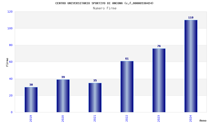| Anno | Firme | Importi | Media | Naz. | Reg. | Prov. | Comu. |
