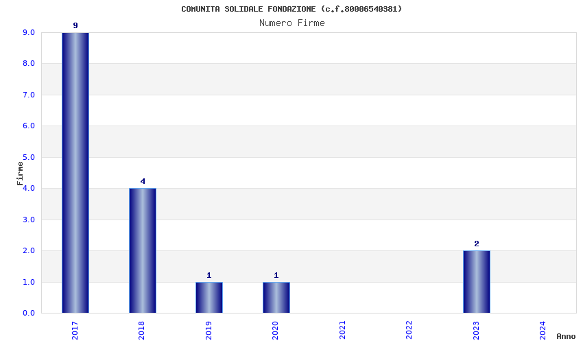 | Anno | Firme | Importi | Media | Naz. | Reg. | Prov. | Comu. |