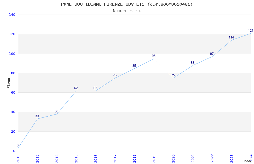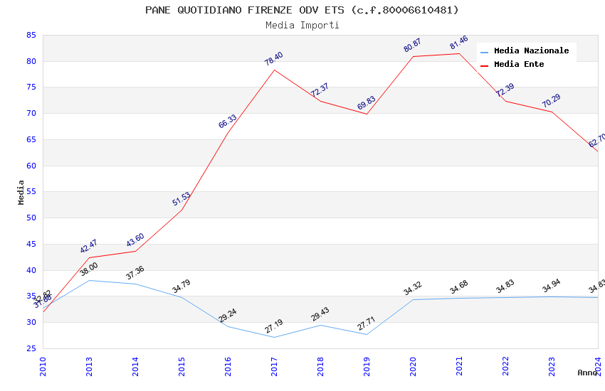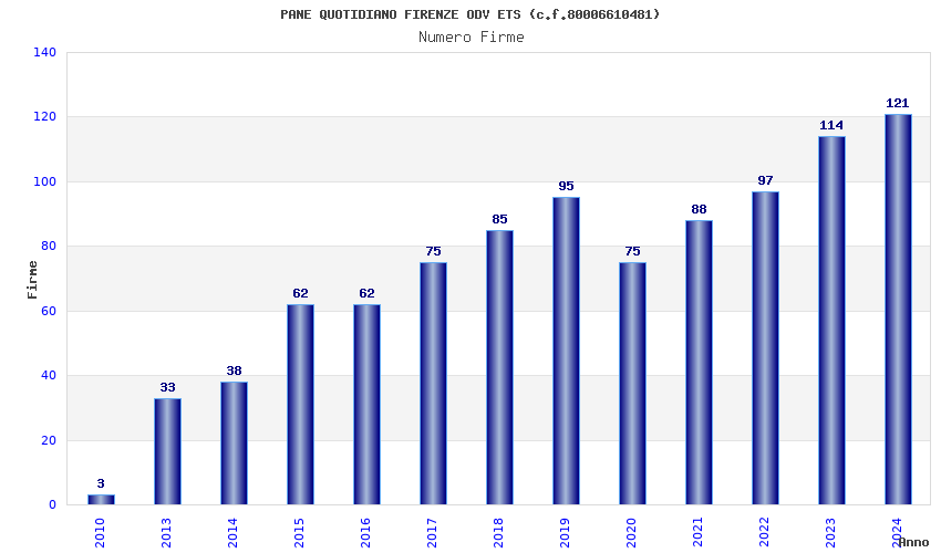 | Anno | Firme | Importi | Media | Naz. | Reg. | Prov. | Comu. |