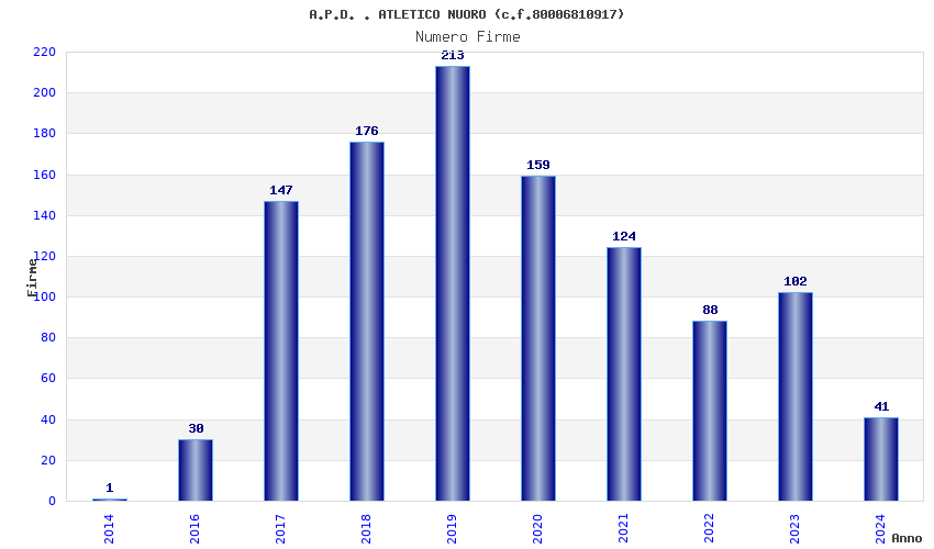 | 2019 | 213 | 8.366,41 | 39,28 | 6.393 | 80 | 7 | 2 |