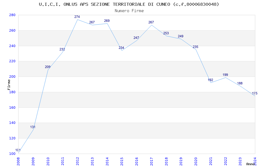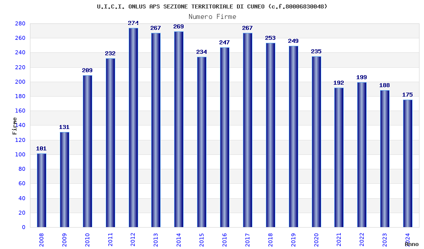 | Anno | Firme | Importi | Media | Naz. | Reg. | Prov. | Comu. |