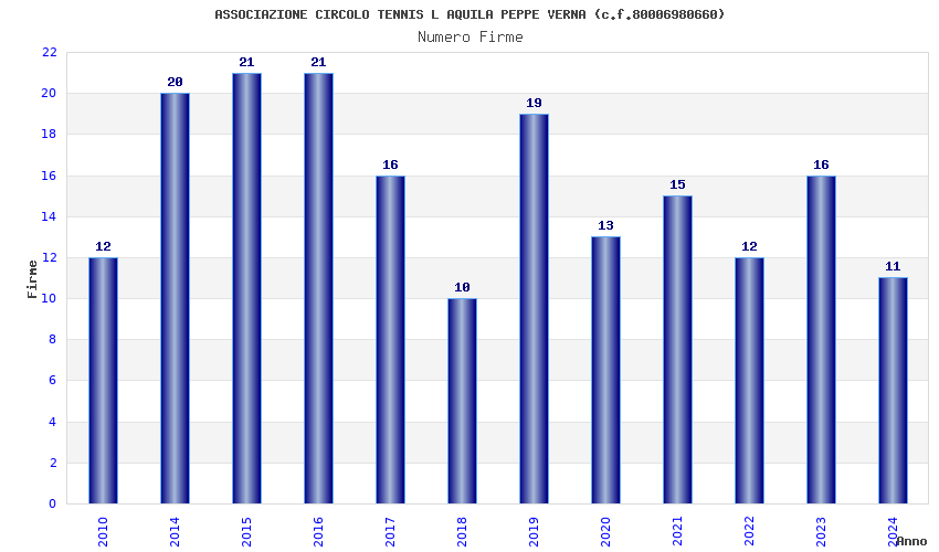 | Anno | Firme | Importi | Media | Naz. | Reg. | Prov. | Comu. |